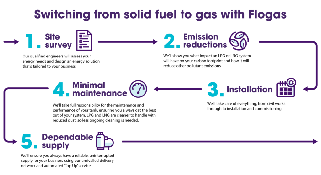 Any business that uses coal or wood for its heating, production or industrial processes can benefit from making the switch to LPG or, if you’re a high energy user, LNG.